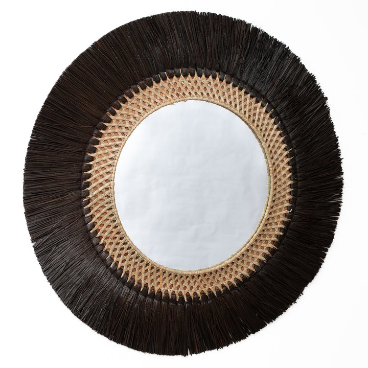 Add a touch of exotic character and natural elegance to your home with this stunning Bali-inspired handmade mirror. Its frame, crafted from natural woven materials and finished with dark tropical accents, creates a luxurious boho look and becomes a true statement piece in any interior.