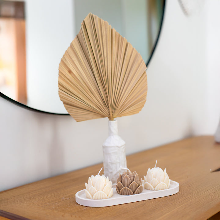 Bring an exotic touch to your surroundings with these natural, large and artistically trimmed dried palm leaves.